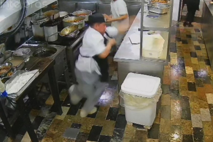 Nas imagens, é possível ver Gilson amolando uma faca, enquanto a vítima trabalha em um fogão distante. Ao se aproximar do agressor, ele é agarrado pelas costas atingido com dois golpes de faca. Os dois entram em briga corporal, mas o cozinheiro consegue se desvencilhar e foge para o salão do estabelecimento.