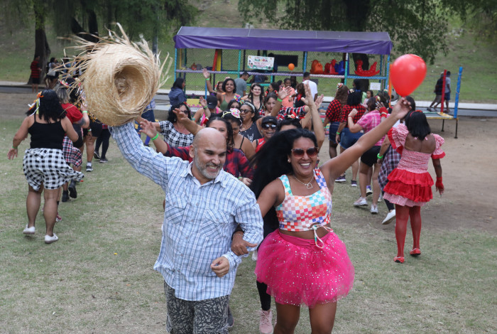 "Fomos na sorte de não pegar a chuva. Fizemos um 'aulão' de aniversário com dança e algumas brincadeiras como corrida de saco, bambolê, bolas de encher. Fizemos também uma festa julina com direito a túnel, caracol, balance e galope. Colocamos várias músicas temáticas de festa junina", explicou o professor de dança Sebastião Barros, que levou as alunas para o 'aulão' temático.