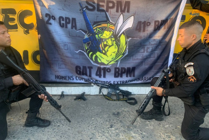 Com os suspeitos, agentes apreenderam um fuzil, duas pistolas, uma granada, munições e um veículo. Segundo a PM, desde novembro do ano passado, 41 fuzis foram apreendidos pelo 41º BPM (Irajá).