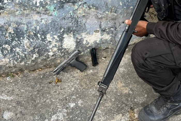 Uma pistola calibre 9mm foi apreendida na ação. A ocorrência foi registrada na 33ª DP (Realengo).