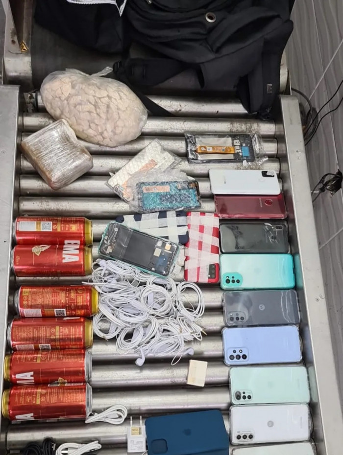Agente carregava celulares, carregadores, fones de ouvido, cervejas e material identificado como drogasReprodução