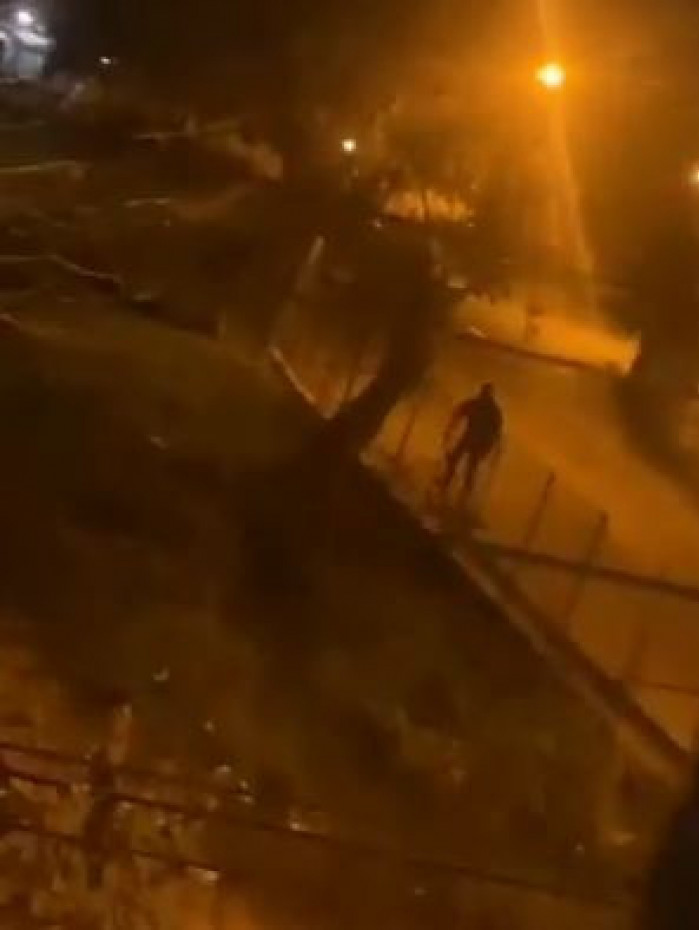 Na imagem, um policial tenta se proteger durante o tiroteioReprodução/Rede Social