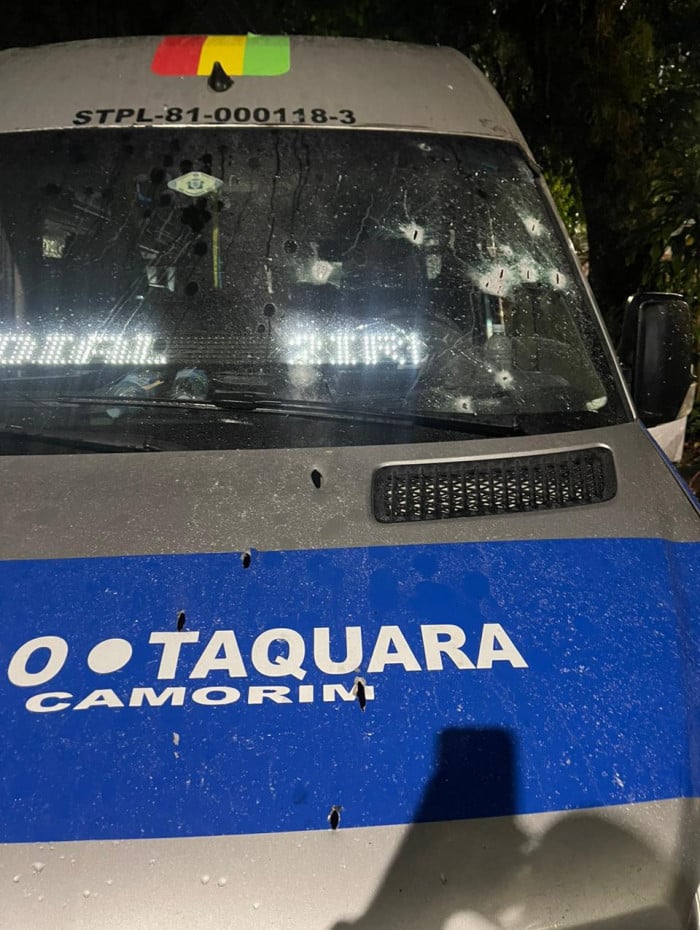 Marcas de tiros nas vans de transporte alternativoReprodução