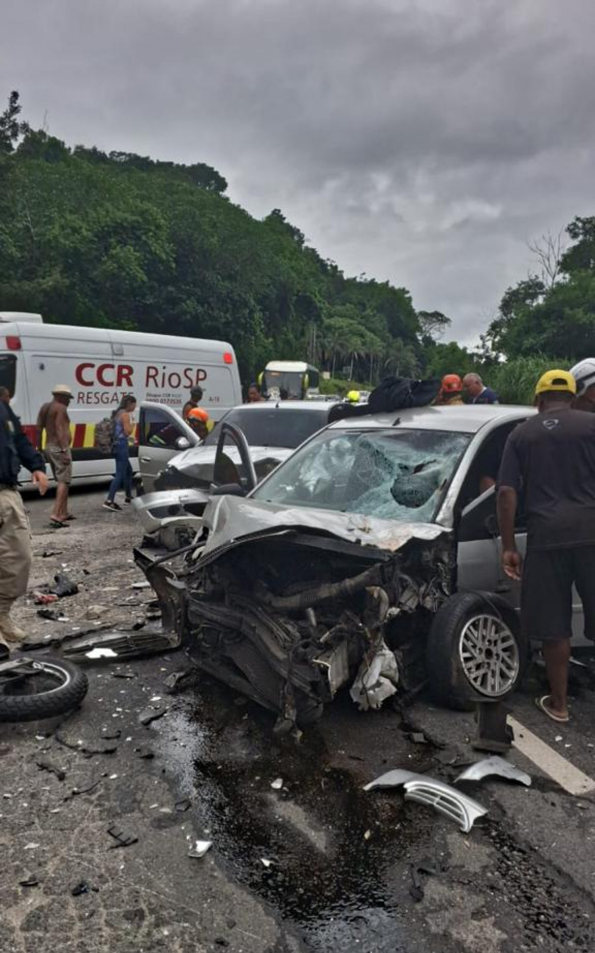 Segundo informações da Polícia Rodoviária Federal, houve uma colisão frontal entre dois carros e uma moto, no Km 422. As duas pessoas que estavam na motocicleta faleceram. O condutor, de 66 anos, morreu na hora; já a passageira, de 56 anos, teve a morte confirmada no fim da tarde.