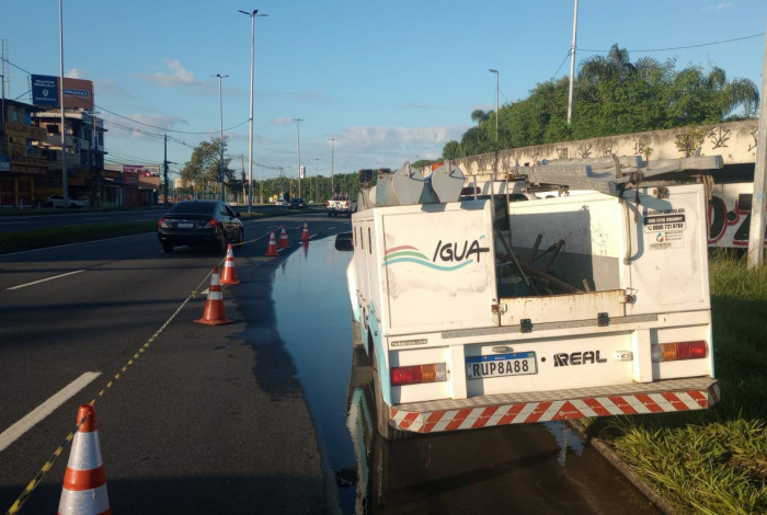 Devido ao trabalho dos funcionários da empresa, uma das faixas da avenida, no sentido Barra da Tijuca, em frente ao Supermercado Assaí, precisou ser interditada para o trabalho das equipes. No local, um bolsão d'água se formou devido ao vazamento.