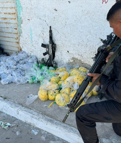 Rio - Policiais militares do 15º BPM (Duque de Caxias), com o apoio de outras unidades do 3° Comando de Polícia de Área (3° CPA/Baixada Fluminense), apreenderam, nesta quarta-feira (8), um fuzil, dez mil pinos de cocaína e oito mil "sacolés" de maconha em uma operação em Duque de Caxias, na Baixada Fluminense. As ações aconteceram nas comunidades do Sapinho, Jaqueira, Cacareco e Sossego.