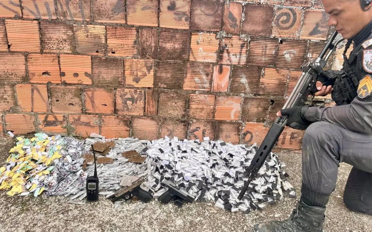 Os agentes apreenderam armas, drogas e equipamentos utilizados pelo tráfico na região