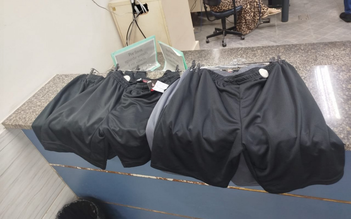 O material apreendido variava entre camisetas e calções, nas cores preto e cinza.