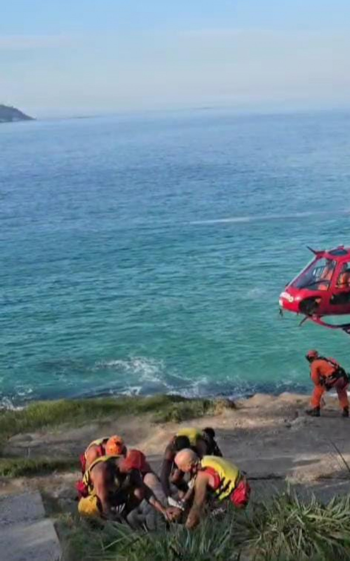 Bombeiros resgatam mulher que caiu em trilha na Praia da Joatinga.