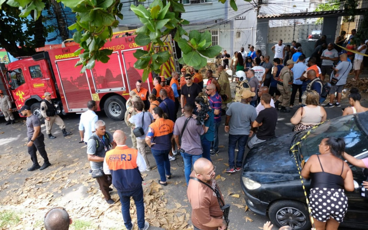 De acordo com o Corpo de Bombeiros, agentes dos quartéis de Ramos e Penha foram acionados às 7h39 e chegaram ao local por volta das 7h45. A operação conta, neste momento, com o empenho de 13 unidades operacionais, incluindo o Grupamento de Operações Aéreas da corporação e especialistas em salvamento em altura, cerca de 90 bombeiros, com apoio de 30 viaturas.