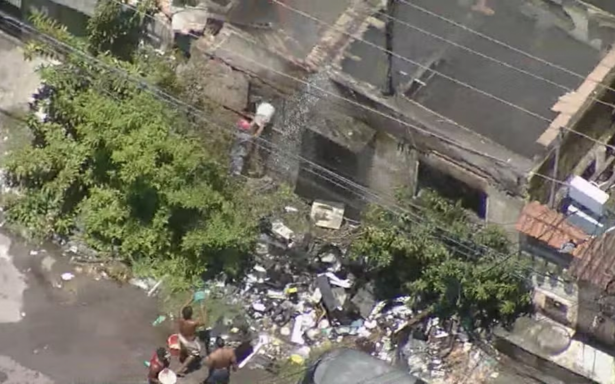 Com a alta temperatura, o teto da residência cedeu e desabou. Antes da chegada do Corpo de Bombeiros, moradores tentaram conter o fogo utilizando baldes de água.