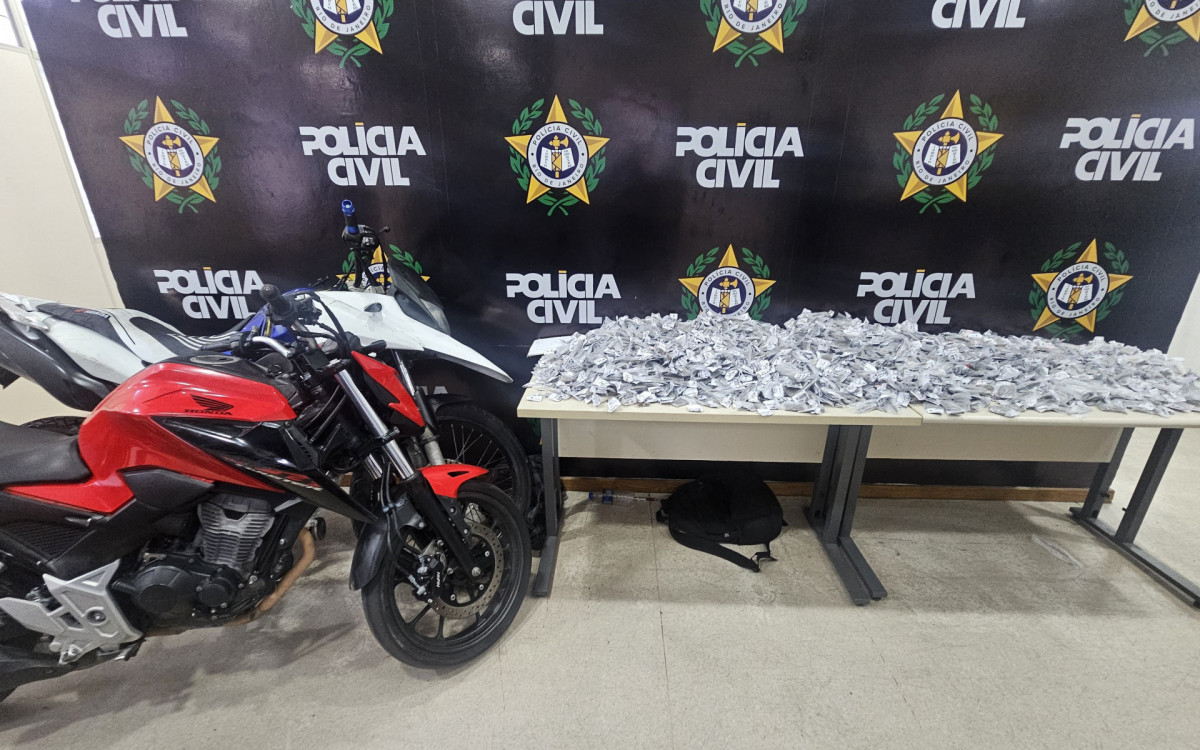Na ação, uma grande quantidade de drogas e duas motos foram apreendidas, disse a polícia