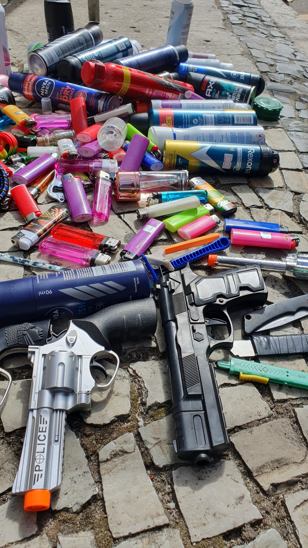 Ao longo das revistas no evento, os agentes utilizaram detectores de metal e encontraram estiletes, canivetes, armas falsas, prestobarbas e desodorantes, isqueiros e demais itens.