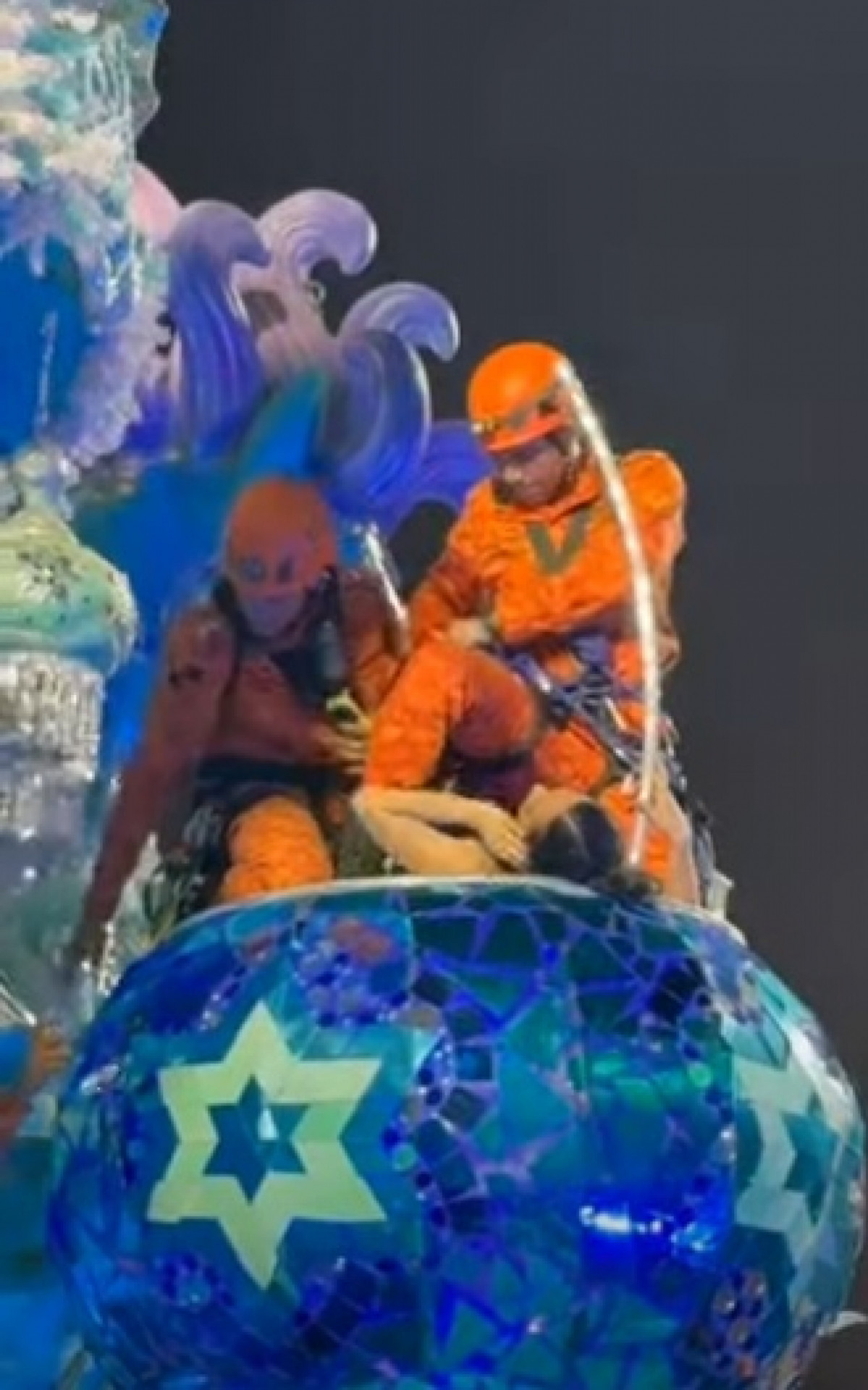 Segundo os bombeiros, ao perceberem que a integrante perdia a consciência e corria risco de queda, os especialistas em salvamento em altura deram início à ação de resgate. Em um vídeo divulgado pela corporação, é possível ver dois militares em cima da alegoria, onde a vítima se apresentava como destaque. Eles prendem cordas ao redor do corpo dela e deitam a componente, antes da retirada. Confira abaixo.