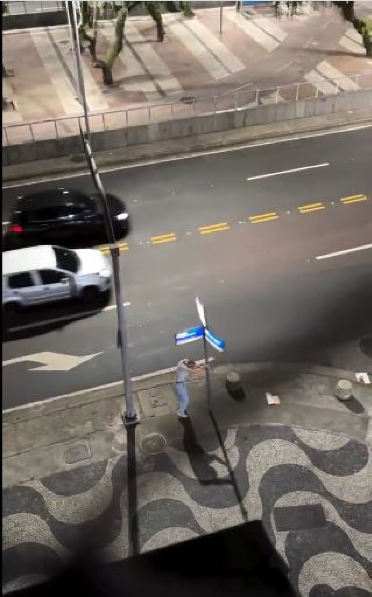 Turista destruiu placas, quebrou carros e motos em CopacabanaReprodução