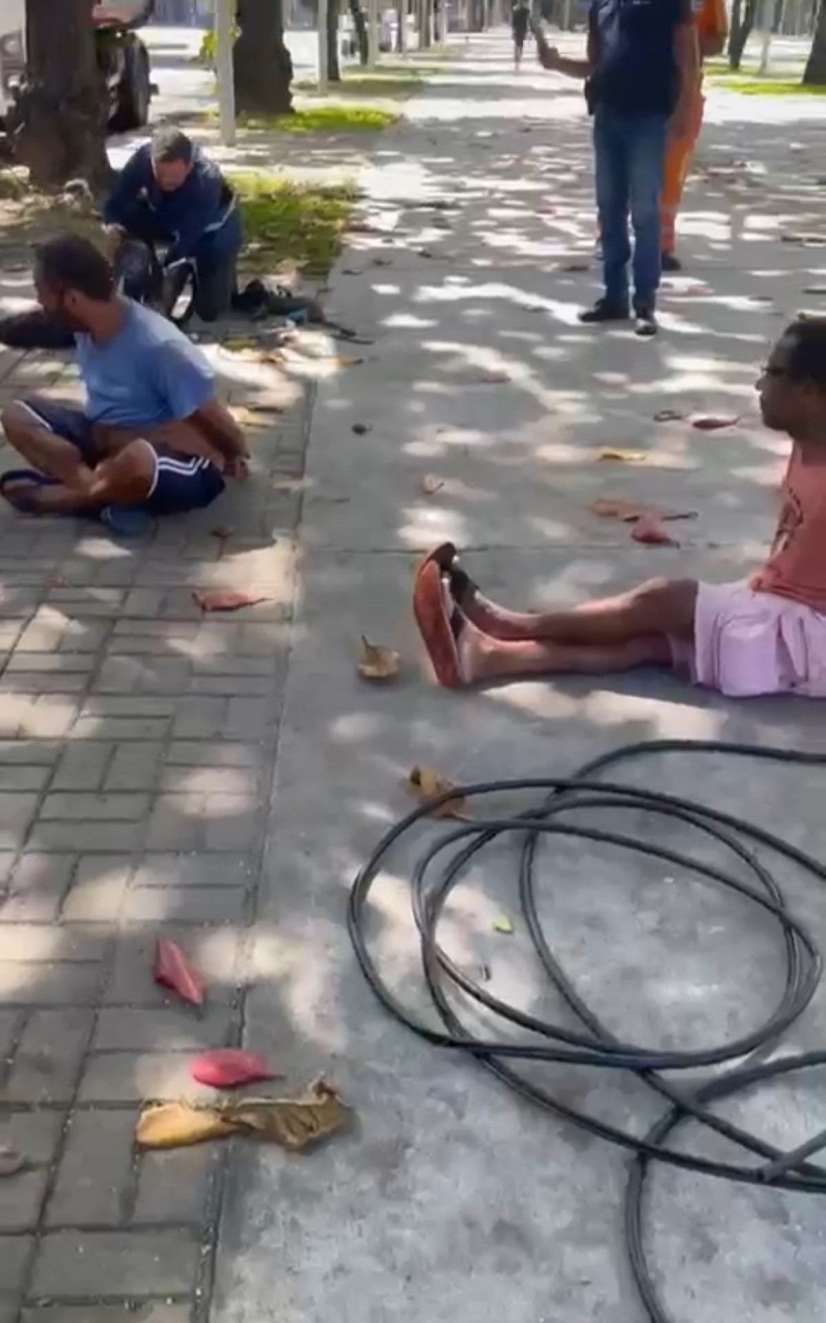 Os homens, identificados como Franceir Bruno dos Santos e José Cardoso dos Santos Neto, foram encaminhados à 12ª DP (Copacabana). Um dos presos já possuía dez passagens por furto de cabos.