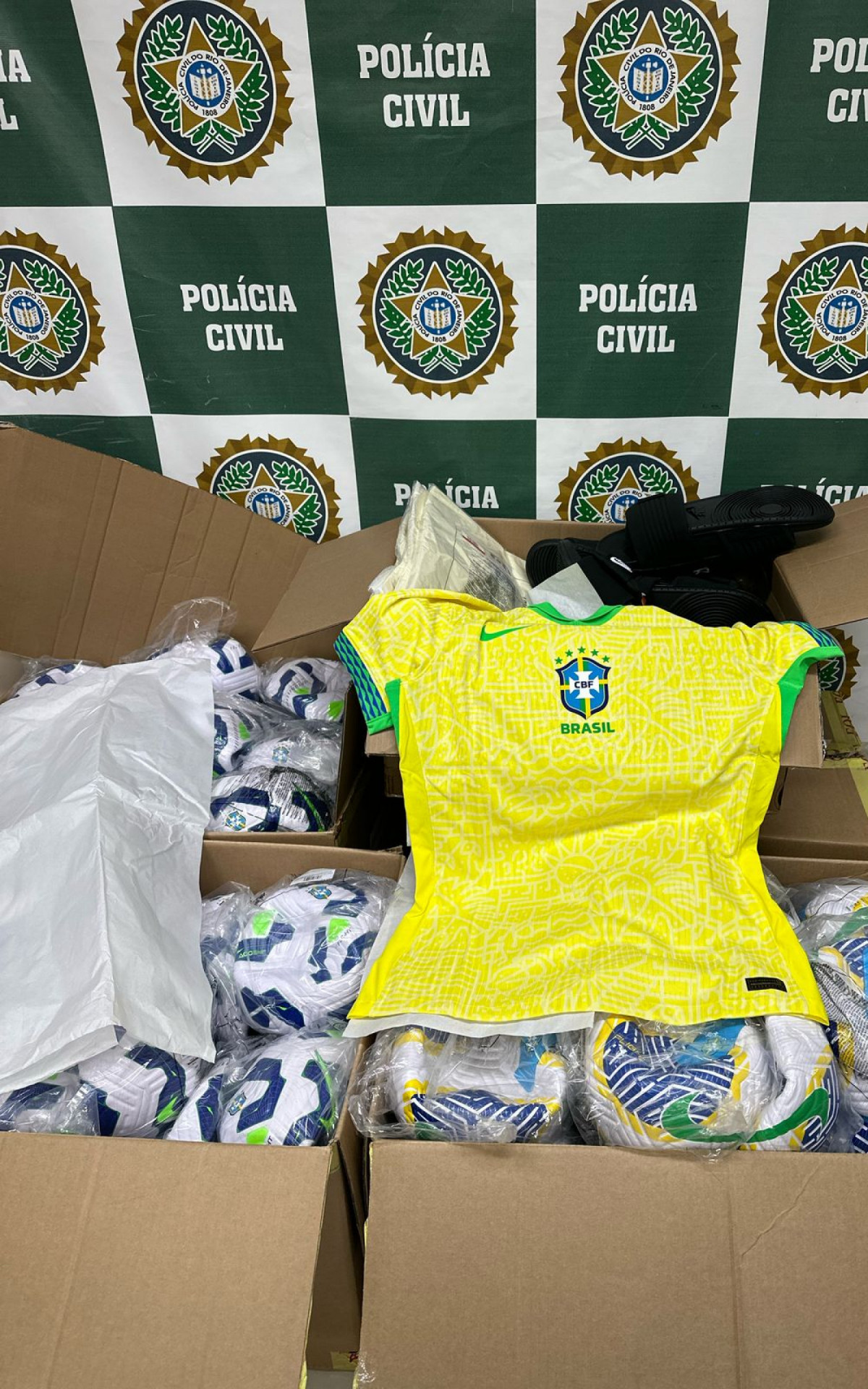 Na tarde desta quinta, agentes da 110ª DP (Teresópolis), descobriram que um dos carros utilizados no crime estaria deixando a Granja Comary com os produtos. As equipes abordaram o veículo e encontraram caixas com camisas da Seleção Brasileira, bolas, outros uniformes, chuteiras e chinelos.