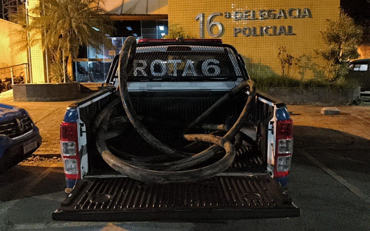 Os policiais levaram os suspeitos e os materiais para a 16ª DP (Barra da Tijuca), onde registraram o caso.