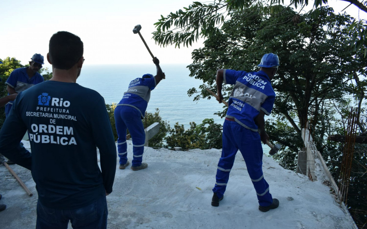Rio - Duas construções irregulares e uma laje com vista para o mar foram demolidas no Vidigal, na Zona Sul, nesta quarta-feira (14), durante ação da Secretaria Municipal de Ordem Pública (Seop). Os imóveis ficavam em uma área que já havia passado por demolições anteriores de outras edificações ilegais.