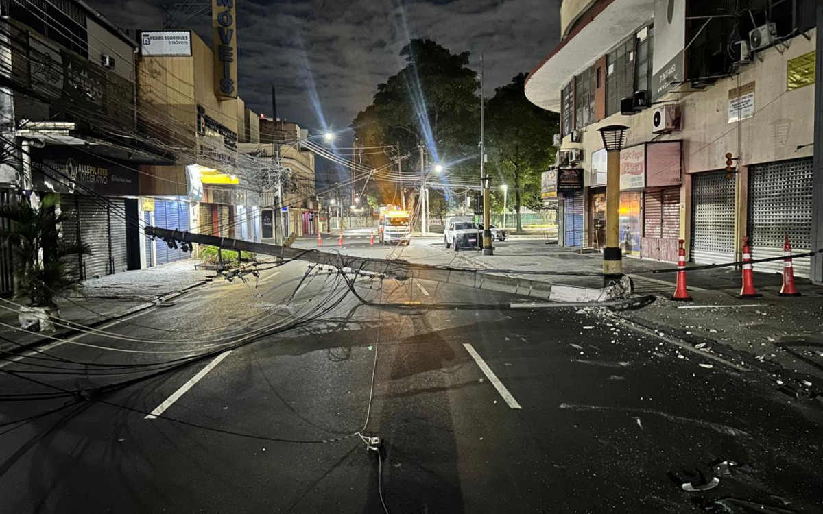 Rio - Um carro derrubou um poste e interditou a Rua Medina, no Méier, Zona Norte do Rio, na madrugada desta sexta-feira (16).