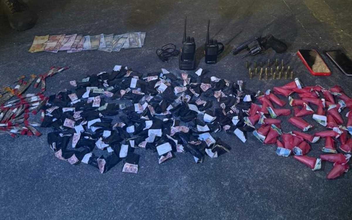 Segundo a PM, os agentes apreenderam uma arma, munições, drogas, dinheiro e rádios transmissores durante a ação.