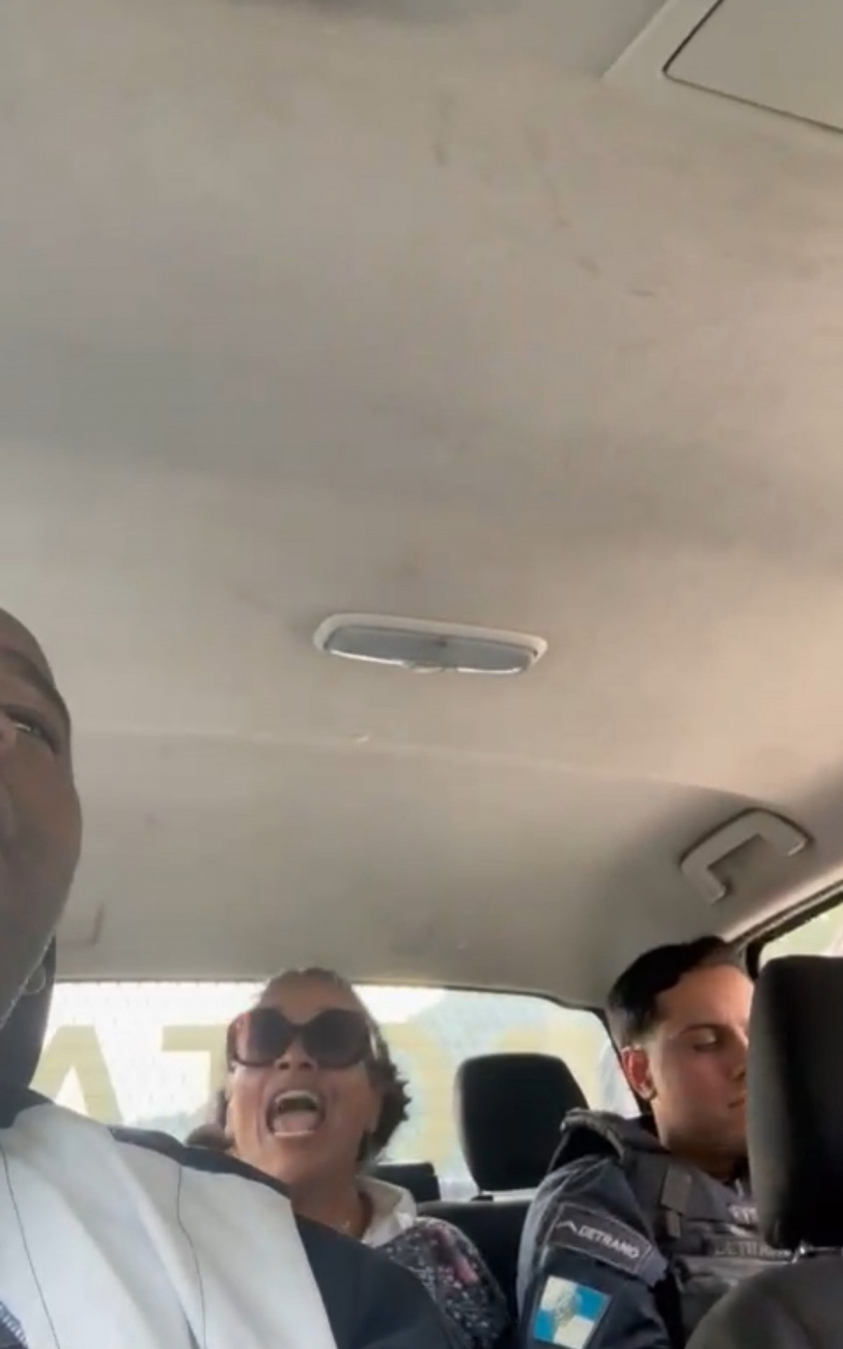 Diante da recusa em cooperar e o do comportamento agressivo, os policiais utilizaram algemas para leva-lá com segurança à 32ª DP (Taquara). No caminho até a unidade, a mulher continuou com os ataques verbais, direcionando ofensas racistas ao agente.