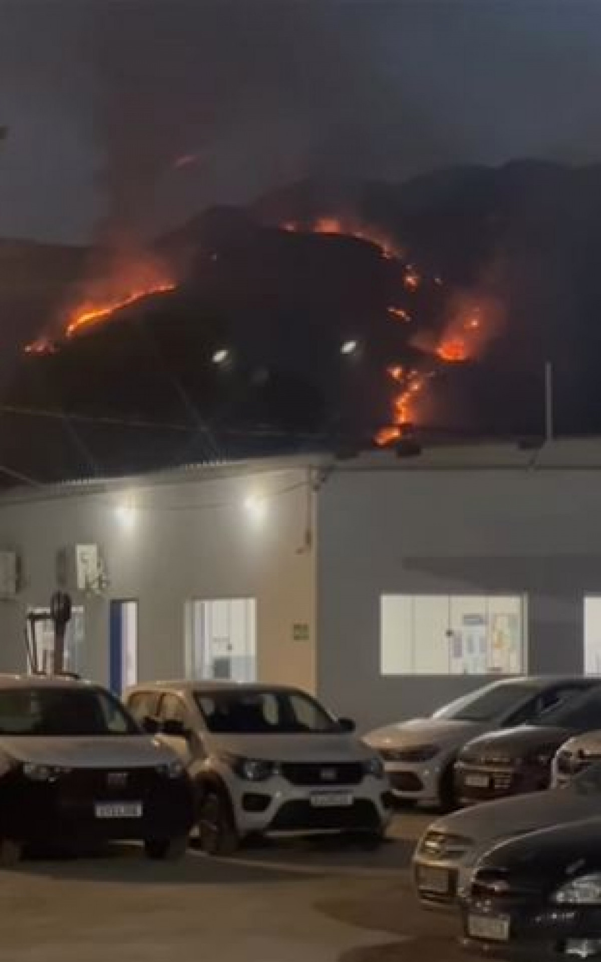 Ainda nas imagens, foi possível ver um carro do Corpo de Bombeiros no local. Segundo a corporação, o acionamento ocorreu por volta das 16h30, mas o fogo continuou se alastrando durante a noite.