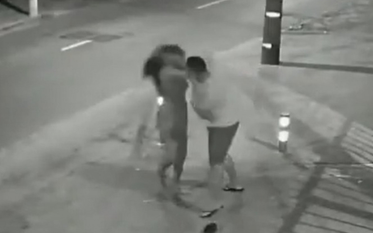 Homem agride mulher com socos e chutes na Avenida de Santa Cruz.