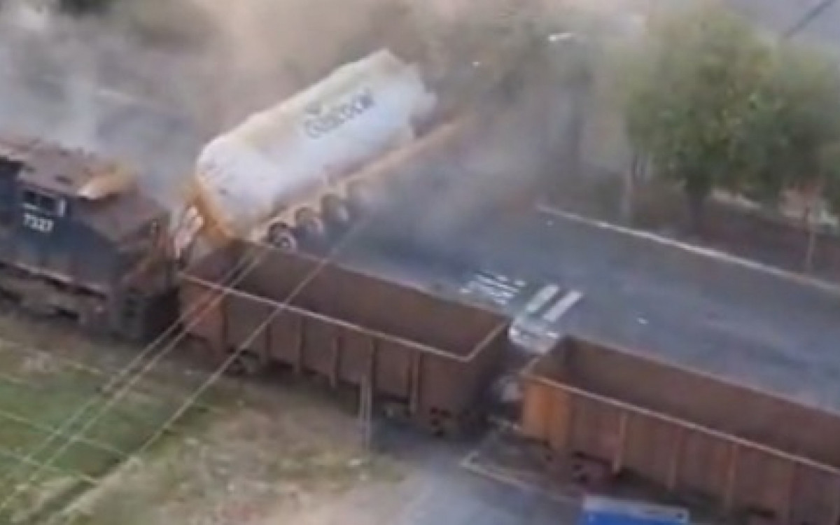 Trem atinge carreta com cilindro de gás natural em Paraíba do Sul