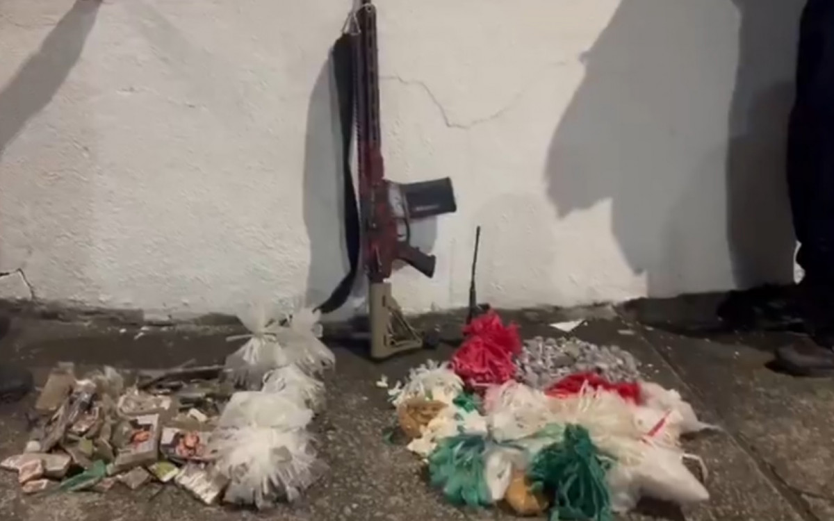 Fuzil e drogas apreendidas após confronto na Linha VermelhaDivulgação