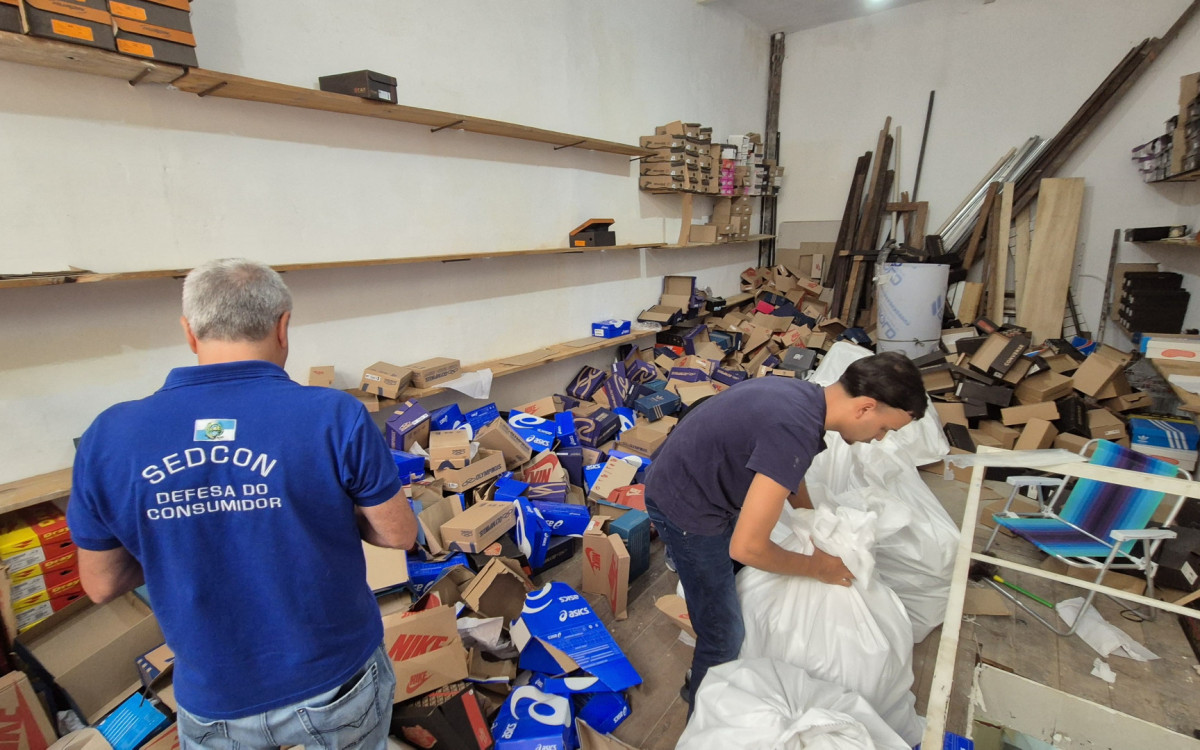 Mais de R$ 500 mil em tênis falsificados são apreendidos em loja na SaaraDivulgação