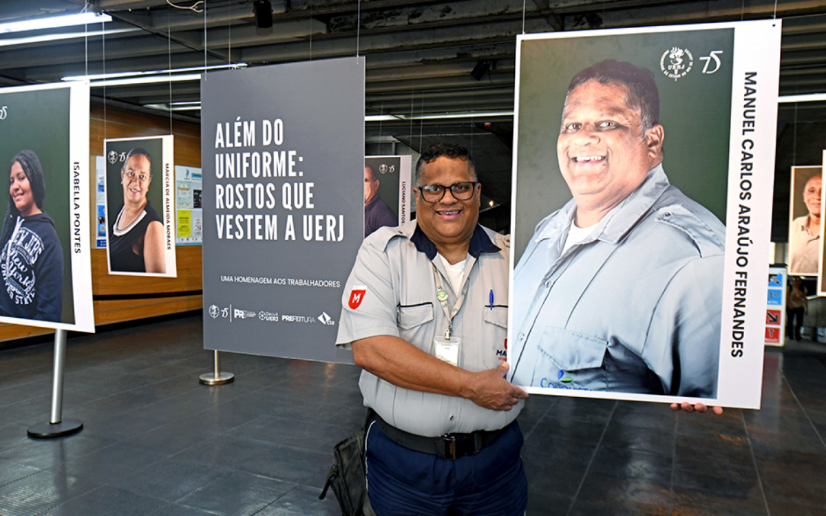 A exposição gratuita “Além do uniforme: rostos que vestem a Uerj”, que homenageia os trabalhadores terceirizados da Universidade Estadual do Rio de Janeiro, entrou na sua última semana em cartaz, no campus Maracanã. O projeto faz parte das ações de comemoração aos 75 anos da instituição.