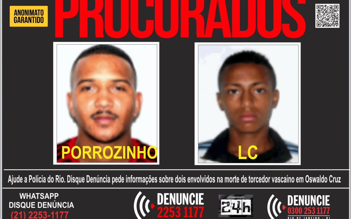 Disque Denúncia busca informações sobre foragidos envolvidos na morte de torcedor vascaíno