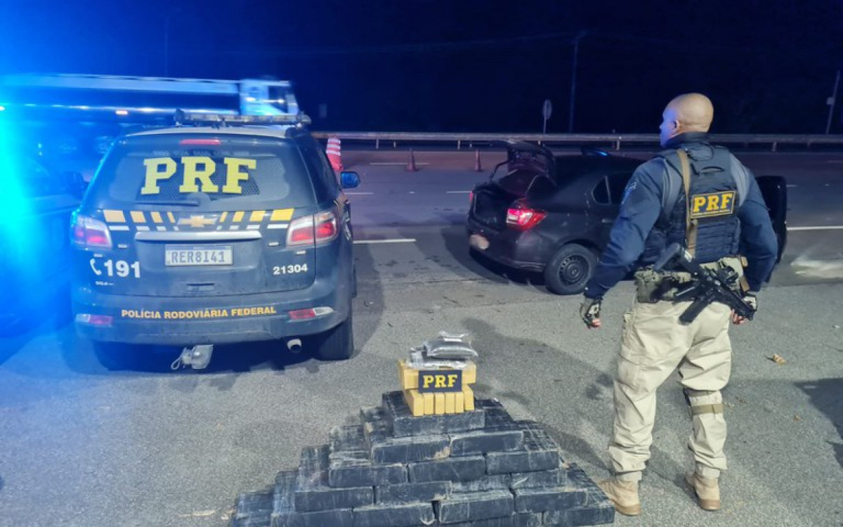 Durante a abordagem, os documentos dos dois ocupantes do carro foram revistados e os agentes fizeram uma vistoria no interior do veículo. No porta-malas, foram encontrados diversos tabletes de maconha e sete pacotes de haxixe.