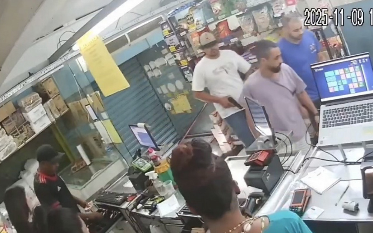 Rio - Câmeras de segurança registraram o momento em que quatro homens invadiram uma loja de doces na Rua Alves, em frente ao Mercadão de Madureira, na Zona Norte do Rio, na manhã desta segunda-feira (10). Nas imagens, é possível ver que as funcionárias estavam reunidas no balcão quando foram surpreendidas pelos criminosos. Um dos homens aparece com uma arma na mão, enquanto os outros roubam o dinheiro do caixa e das mãos de uma das funcionárias.