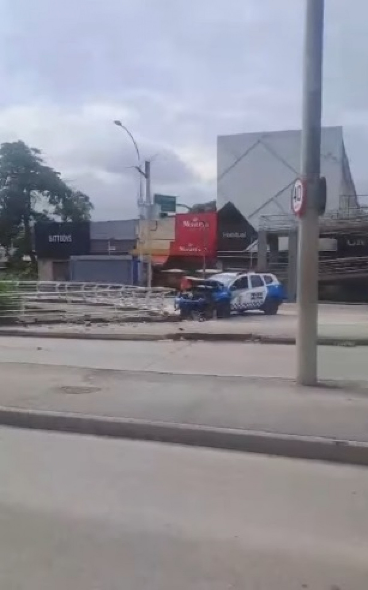 Viatura da PM colide com canteiro em tentativa de abordagem na Taquara