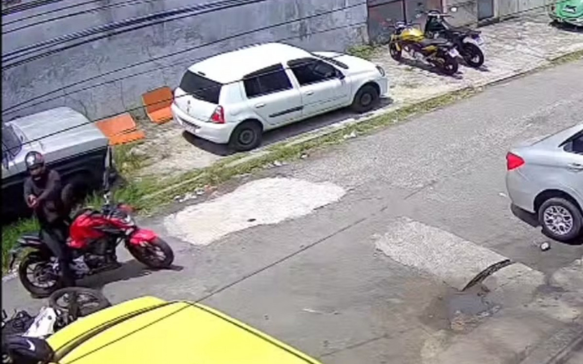 Nas imagens, registradas por volta de 10h30, o PM aparece no canto esquerdo pilotando uma motocicleta, já sendo abordado por dois homens em uma outra moto. Logo depois, a dupla efetua diversos disparos contra o subtenente. Na tentativa de reagir, ele chega a sacar uma arma, mas cai ao lado de um carro.