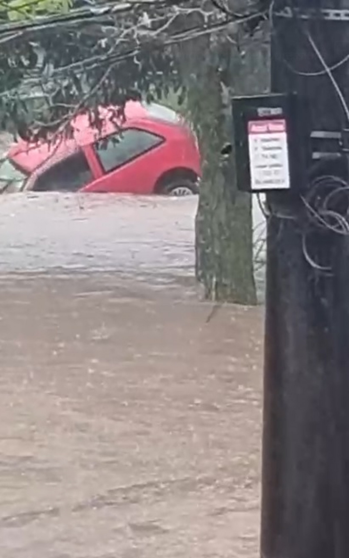 Nas redes sociais, imagens mostram os veículos sendo "engolidos" por um rio que transbordou na altura da Rua Visconde de Souza. Em um dos vídeos é possível ver moradores desesperados pedindo para que o motorista e o carona deixem o carro vermelho.