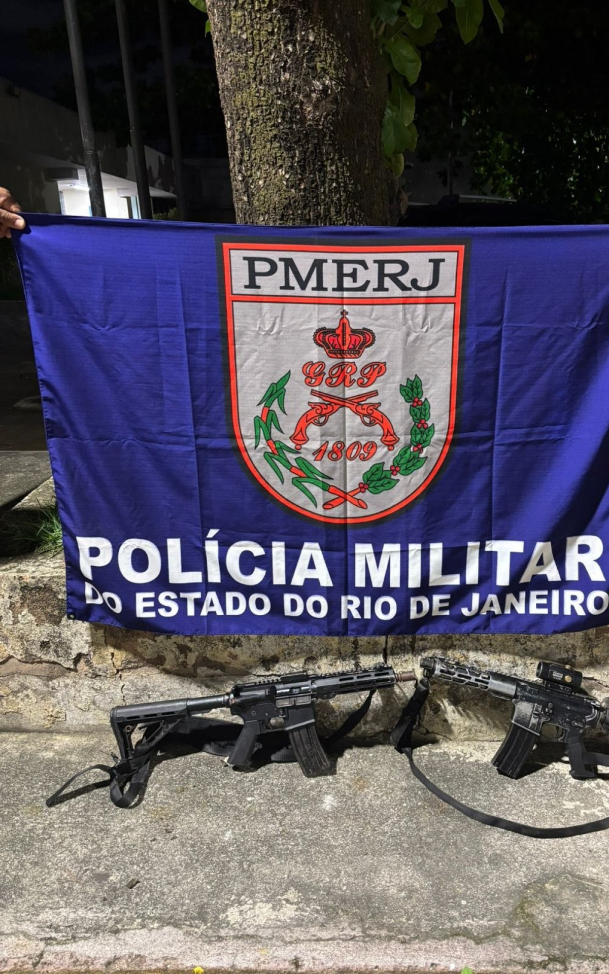 Na ocorrência, foram apreendidos dois fuzis, uma granada, e carregadores.