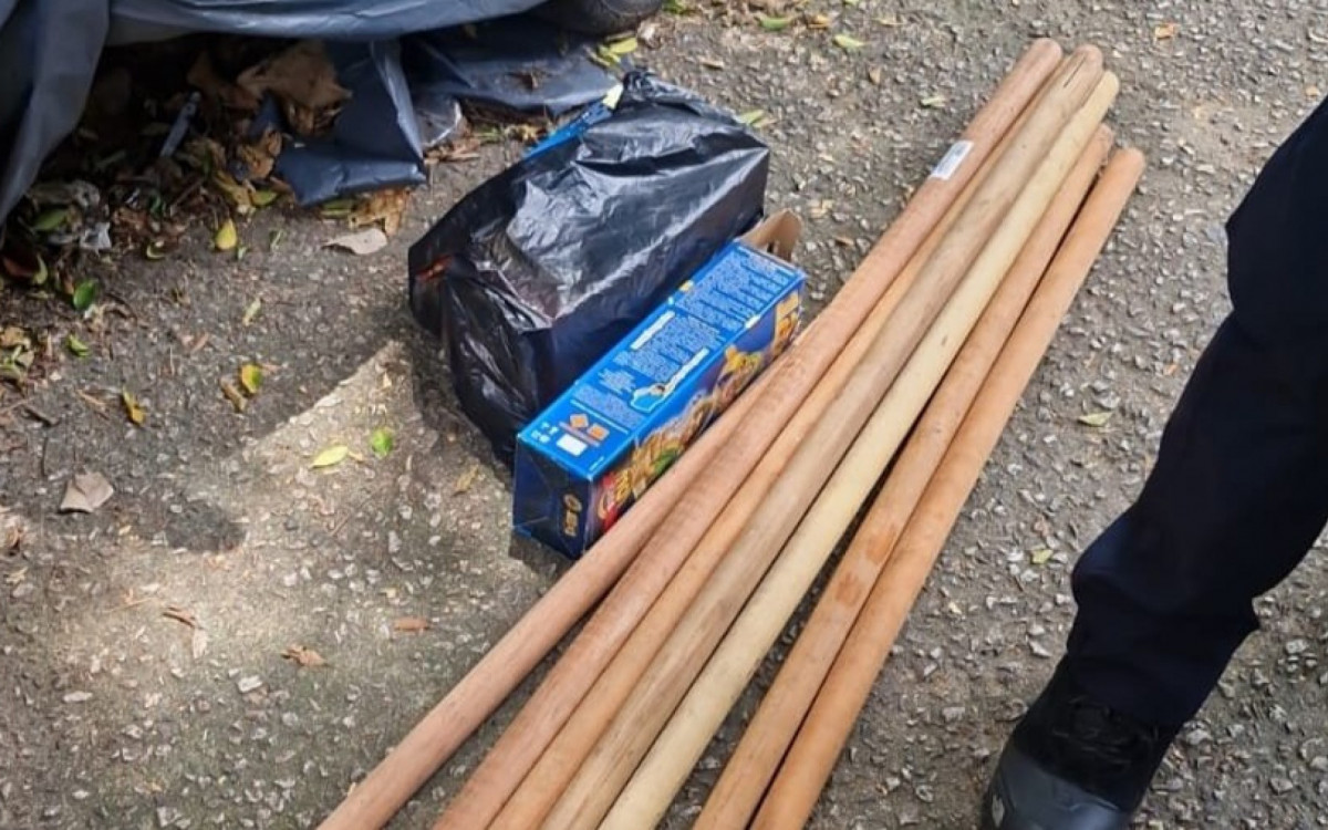 Durante a revista ao grupo, os policiais apreenderam sete bastões de madeira, duas facas, um taco de beisebol, quatro caixas de fogos de artifício, três artefatos explosivos de fabricação caseira e um rádio transmissor.