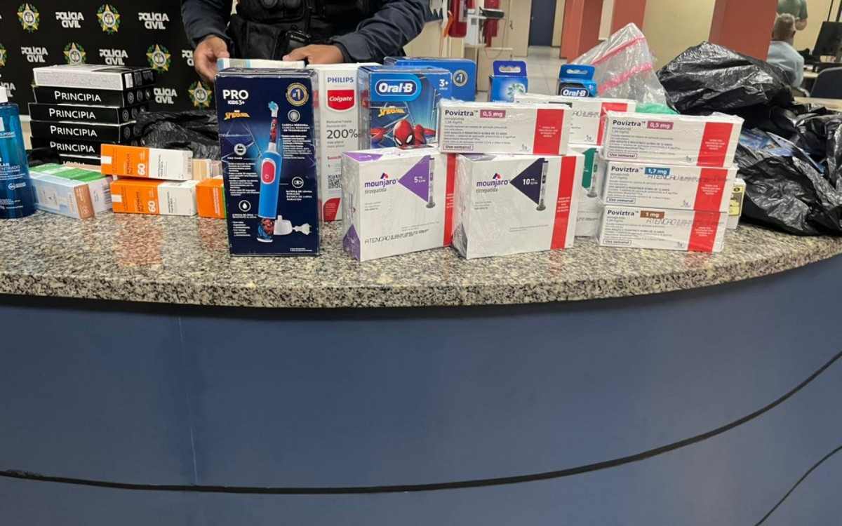 Ainda de acordo com a corporação, os policiais apreenderam diversos medicamentos e outros produtos que estavam dentro de sacos pretos, além de dois celulares. A equipe também localizou um veículo roubado utilizado na ação.