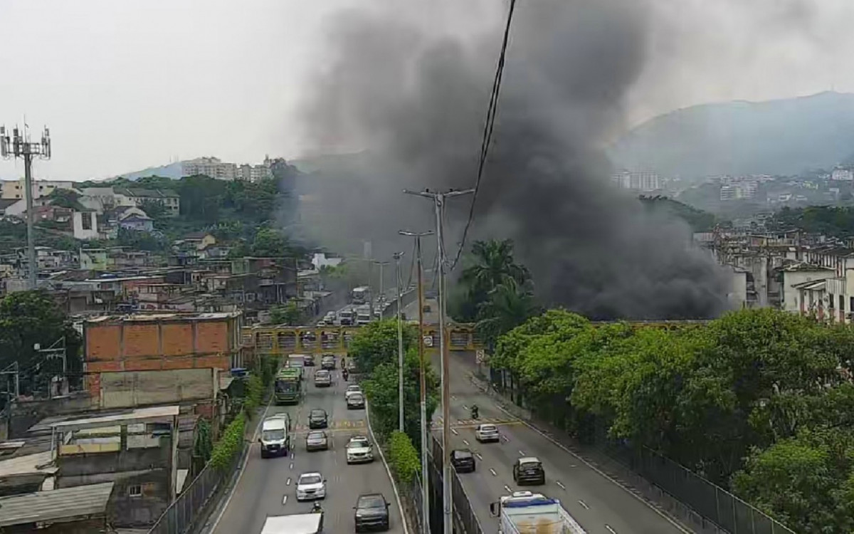 Fogo em entulho na Cidade de Deus prejudica visibilidade de motoristas na Linha Amarela