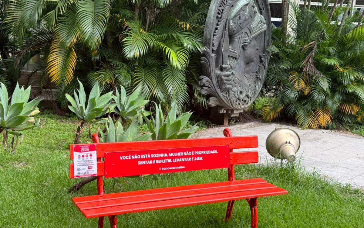 UFRJ instala bancos vermelhos em campi como símbolo de combate ao feminicídio