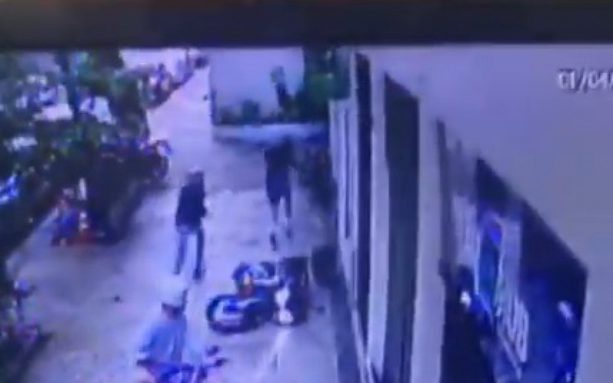 Nas imagens, é possível ver dois criminosos em uma moto, ambos usando capacete, desviando para a calçada, onde estava a vítima. Eles anunciam o assalto, e o homem desce rapidamente do veículo e corre para o meio da rua. Mesmo deixando a moto para trás, um dos assaltantes não se deu por satisfeito e correu atrás da vítima.