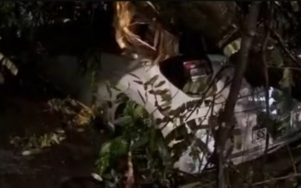 Carro ficou preso debaixo de uma árvore na Rua Augusto Severo, na GlóriaReprodução/Redes sociais