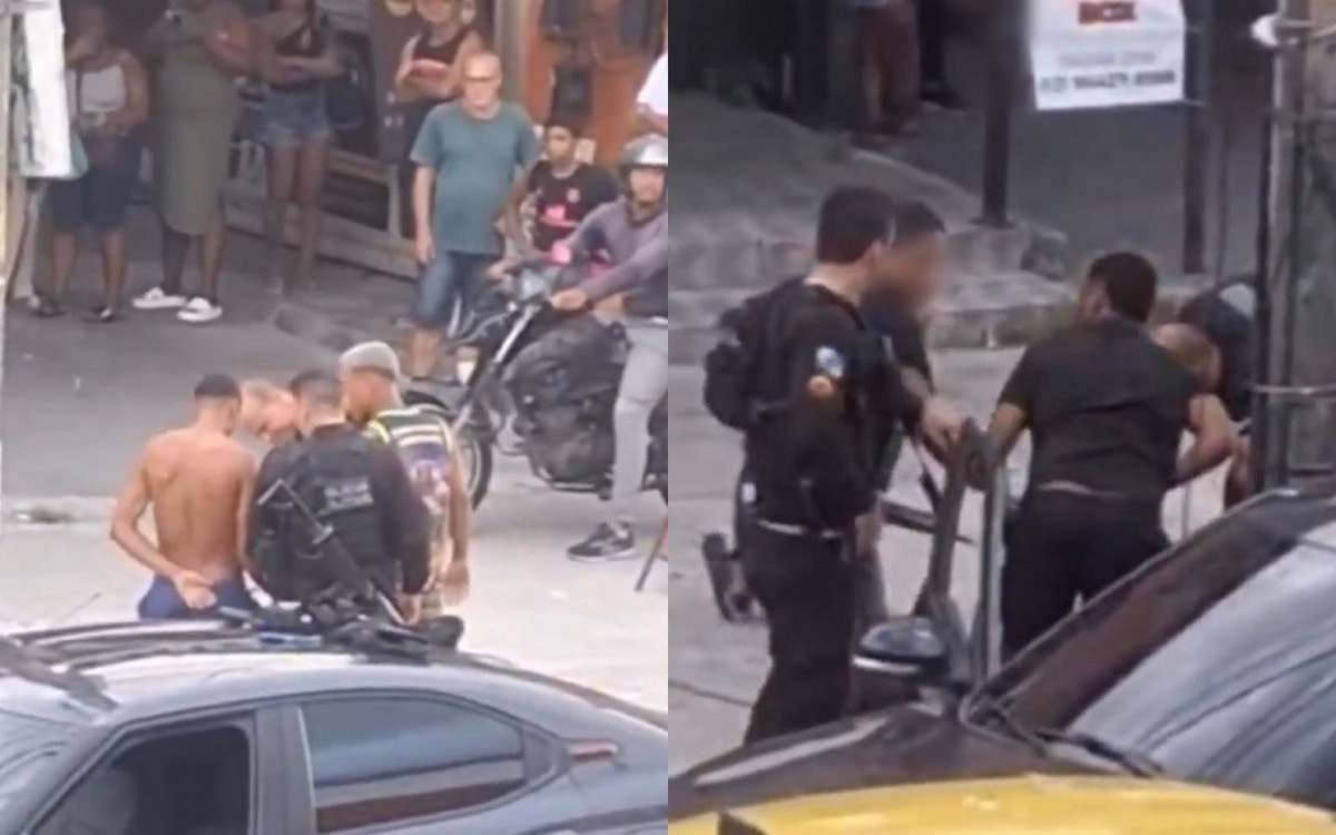 Uma perseguição se iniciou um cerco tático foi feito, interceptando o veículo. Na abordagem, os militares encontraram uma pistola calibre 40, uma arma falsa, e um bloqueador de veículo. Os suspeitos, ainda segundo a PM, são da favela Primavera, de Cavalcanti, também na Zona Norte.