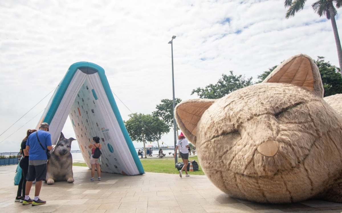 Rio - Uma intervenção artística com obras gigantes, incluindo um gato de 9 metros de diâmetro, despertou a atenção de quem caminhou pela Praça Mauá, próximo ao Museu do Amanhã, no Centro do Rio, neste sábado (11). O evento faz parte de uma ação de reflexão sobre acolhimento, empatia e saúde emocional, temas que são ligados ao universo pet. No mesmo local, há uma feira de adoção de animais.