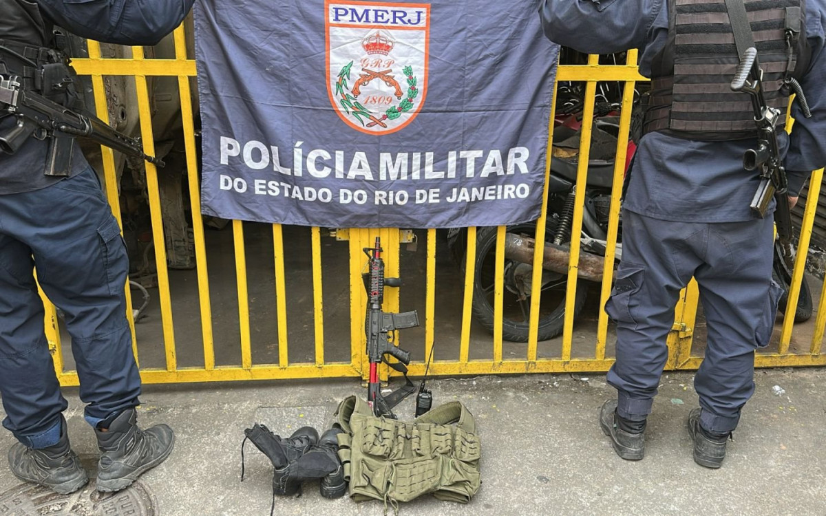 Policiais militares apreenderam fuzil falso, rádio comunicador e material tático na açãoReprodução / Redes Sociais