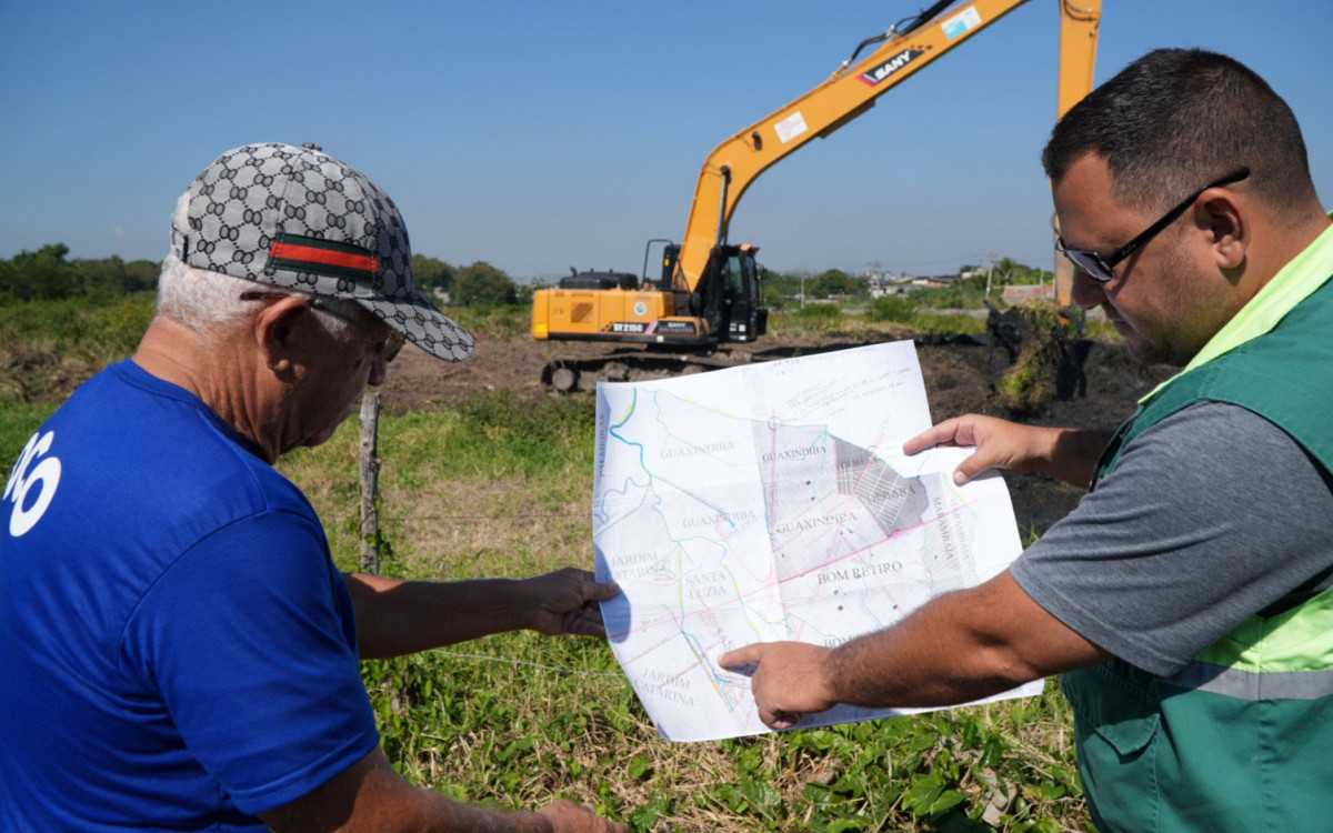A máquina anfíbia - A máquina anfíbia, que atualmente atua em Neves, deve ser levada para o Salgueiro nas próximas semanas. É um equipamento flutuante que auxilia na retirada de sedimentos. Mais tecnológica que as escavadeiras tradicionais, as anfíbias atuam tanto em ambientes aquáticos quanto terrestres. Essas máquinas possuem sistemas de flutuação ajustáveis, que proporcionam a estabilidade necessária para trabalhar em ambientes aquáticos. O equipamento está sendo utilizado desde o início de outubro de 2024 nos rios que deságuam na Baía de Guanabara, começando no Rio Marimbondo, depois no Rio Brandoas e no Canal José Pereira. No Rio Bomba, a intervenção teve início há cerca de 20 dias. Estima-se que foram retirados mais de 15 mil metros cúbicos de sedimentos desses rios.