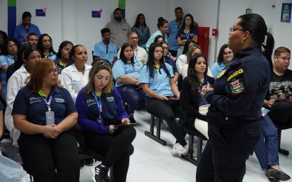 São Gonçalo - Agentes do Grupamento Patrulha Maria da Penha, da Guarda Municipal de São Gonçalo, estiveram, nesta manhã de quinta-feira (2), no Centro de Imagens e Especialidades de São Gonçalo (CIESG), localizado no bairro Vila Três, para dar dicas a mais de 100 funcionários do local sobre como atender, identificar e acolher vítimas de violência doméstica.
